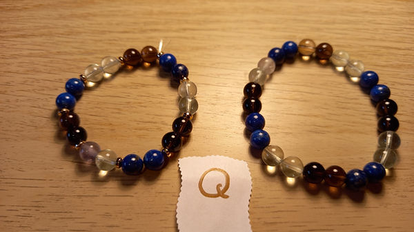 Il est compose de quartz fumé, lapis lazuli, cristale de roche