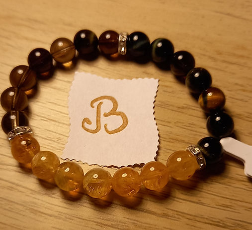 Il est composé d’œil de tigre, de citrine et de quartz fumé.